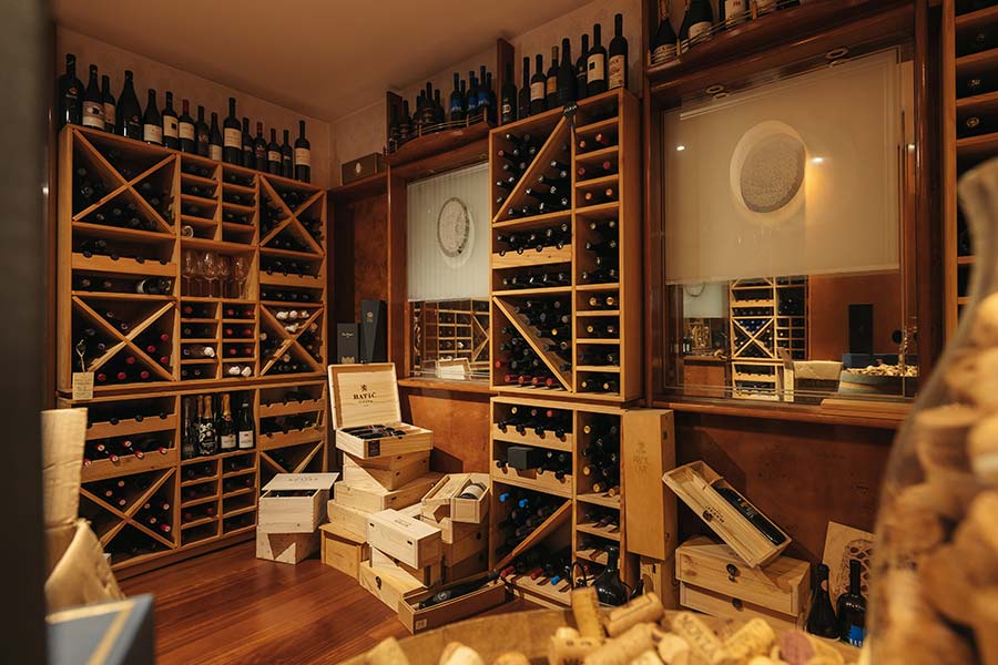 U donjem restoranu nalazi se vinski podrum koji se može pohvaliti bogatom ponudom vrhunskih slovenskih i stranih vina. Povremeno organiziramo degustacije vina s našim kulinarskim delicijama.